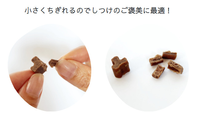 ・犬の食べ方や性格によっては、のどに詰まらせることがありますので、飲み込まないように必要に応じて適度な大きさにして与えてください。