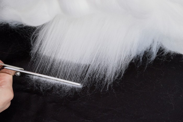 「スコップ状」のクシ刃で毛をしっかりキャッチ。