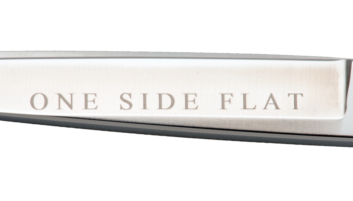 動刃側が平刃となっている片平刃シザー。