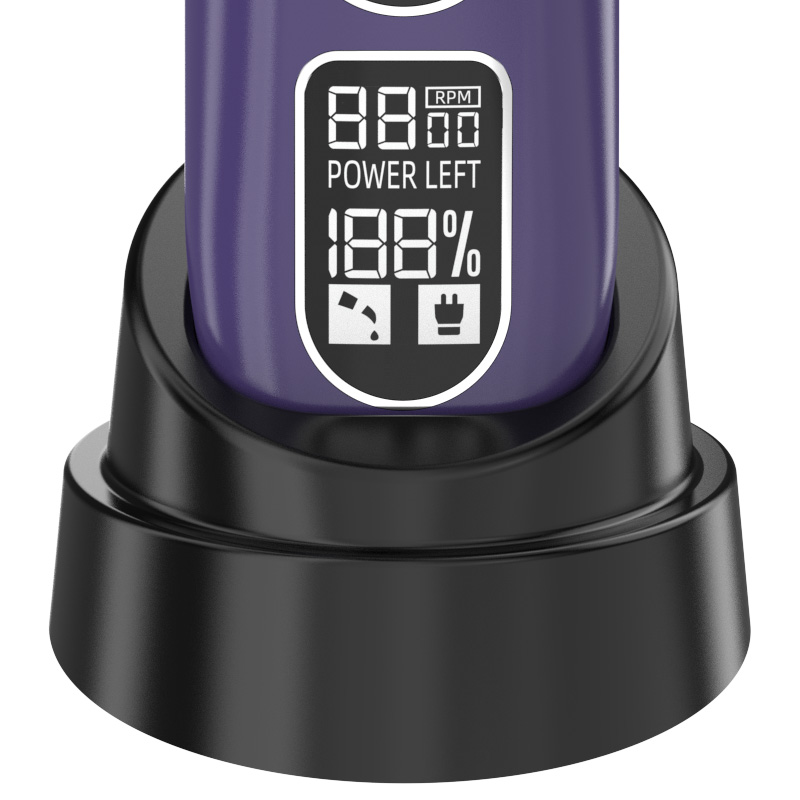 ●5段階のスピード調整●150分の充電で200分使用可能●ディスプレイ表示機能(充電残量・速度)●静音設計●充電スタンド付き●替刃(粗目)付き