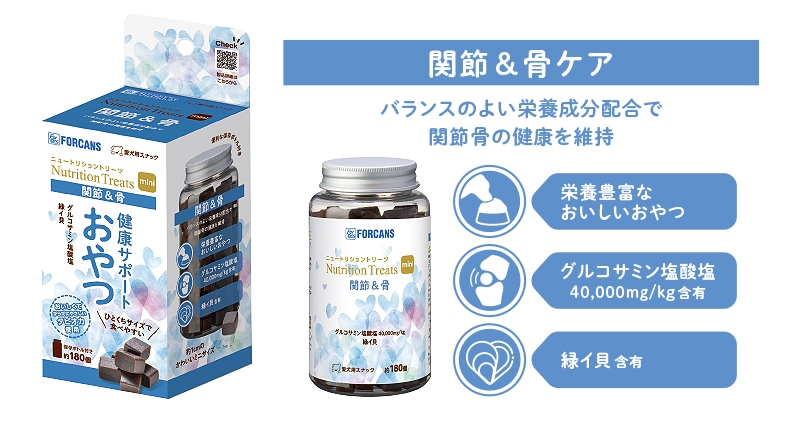 「ニュートリショントリーツ」シリーズから、約1cmのかわいいミニサイズが保存ボトルに入って登場。ひとくちサイズで食べやすく、小型犬にも与えやすくなりました。皮膚&被毛、関節&骨、目&涙、栄養&免疫の4種類のラインナップ。 【皮膚&被毛ケア】 オメガ脂肪酸やアマニオイルなど、バランスのよい栄養成分配合で皮膚と被毛の健康を維持 【関節&骨ケア】 グルコサミンや緑イ貝など、バランスのよい栄養成分配合で関節骨の健康を維持 【目&涙ケア】 ルテイン+ゼアキサンチンやアントシアニン(ビルベリー)など、バランスのよい栄養成分配合で目の健康を維持 【栄養&免疫ケア】 プロポリス・高麗紅参エキスや亜鉛・ビタミンなど、バランスのよい栄養成分配合で健康を維持、本来の愛犬の免疫力を保つ