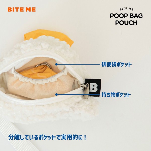 ポーチの中にマナー袋を入れれば、ポーチを開けずに下からマナー袋を簡単に取り出せます。ポケットが二つに分かれているので、マナー袋とリップバームなどの小物も収納可能です。ふわふわのポーチをお散歩バッグやトートバッグ、リードに取り付けて一緒におでかけしましょう。ストラップを手首に通せば、単体で使用可能です。