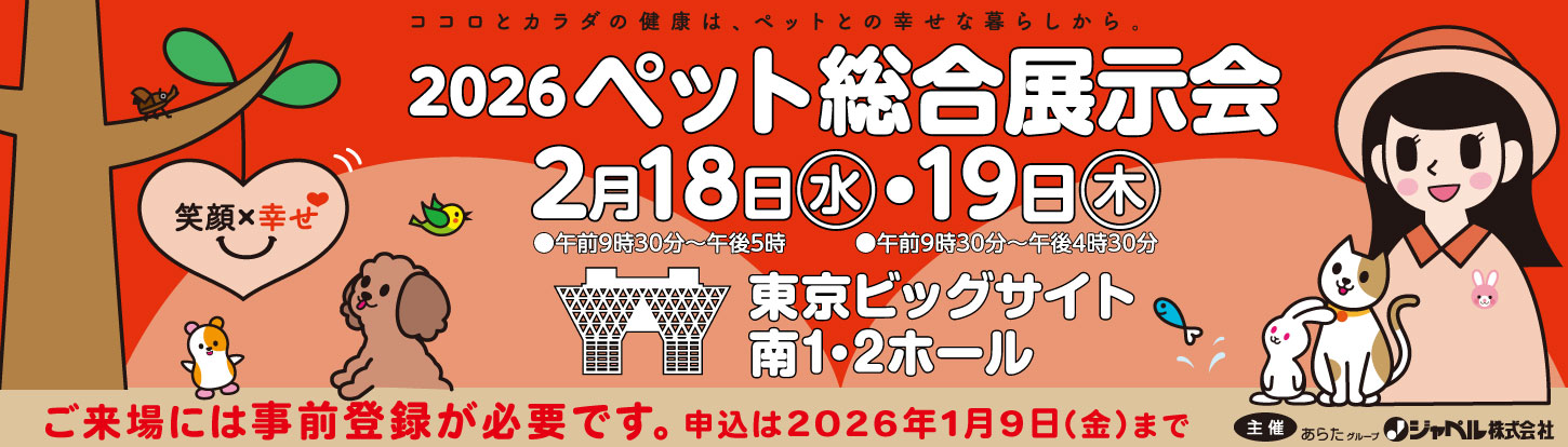 このたび、2月18日(水)・19日(木)の2日間、東京ビッグサイト 南ホールにて、「2026ペット総合展示会」を開催いたします。